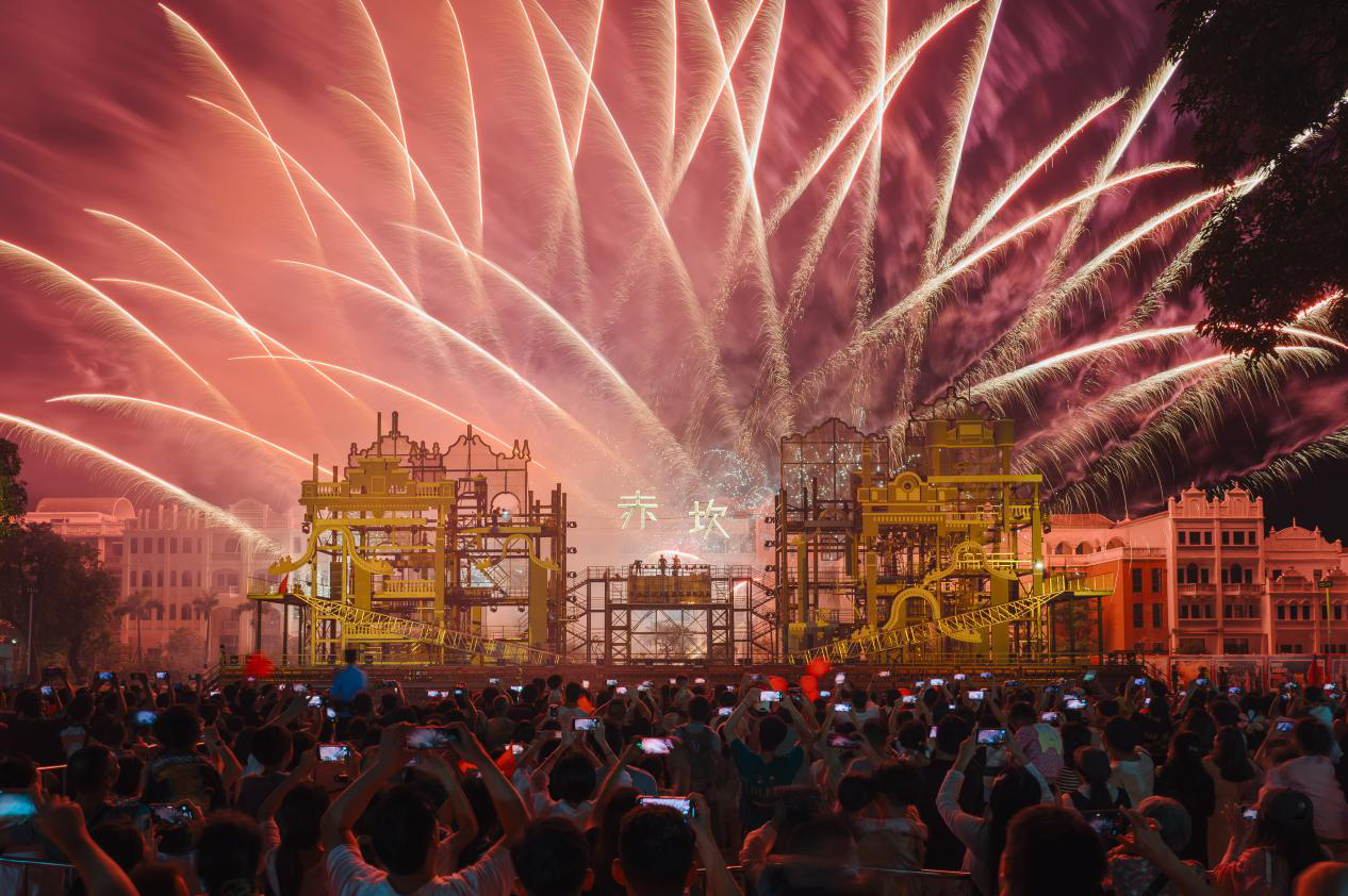 江门市赤坎华裔古镇《火秀》饰演。赤坎华裔古镇景区供图